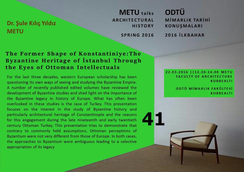 41. Şule Kılıç Yıldız, METU (March 22, 2016) “The Former Shape of Konstantiniyye: The Byzantine Heritage of İstanbul Through the Eyes of Ottoman Intellectuals”