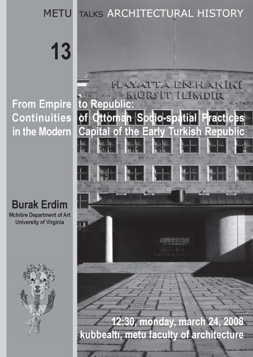 13. Burak Erdim (March24, 2008) “From Empire to Republic: Continuities of Ottoman Socio-Spatial Practices in the Modern Capital of the Early Turkish Republic”