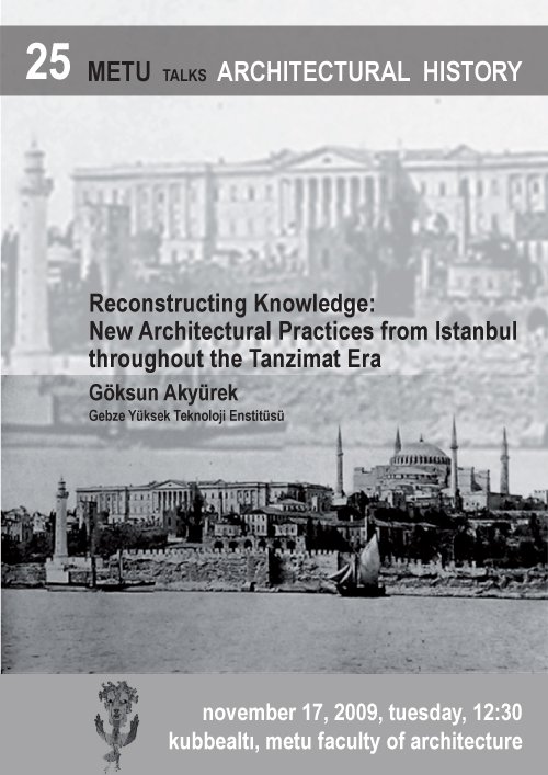 25. Göksun Akyürek, Gebze Yuksek Teknoloji Enstitusu, (November 17, 2009) "Reconstructing Knowledge: New Architectural Practices from Istanbul throughout the Tanzimat Era"