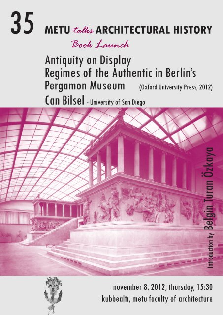 35. Can Bilsel, University of San Diego (November 8, 2012) "Antiquity on Display Regimes of the Authentic in Berlin's Pergamon Museum"