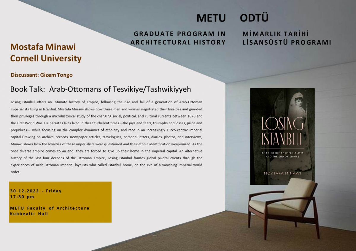 88. Mostafa Minawi "Book Talk: Arab Ottomans of Tesvikiye/Tashwikiyyeh" on December 30, 2022 in Kubbealtı (DOME).