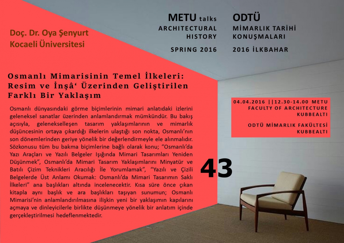43. Oya Şenyurt, Kocaeli Üniversitesi (April, 04, 2016) “Osmanlı Mimarisinin Temel İlkeleri: Resim ve İnşâ‘ Üzerinden Geliştirilen Farklı Bir Yaklaşım”