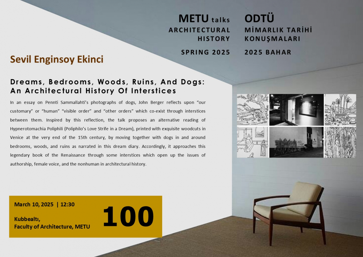 100. Sevil Enginsoy Ekinci, "Dreams, Bedrooms, Woods, Ruins, And Dogs: An Achitectural History of Interstices" on March 10, 2025 in Kubbealtı (DOME).