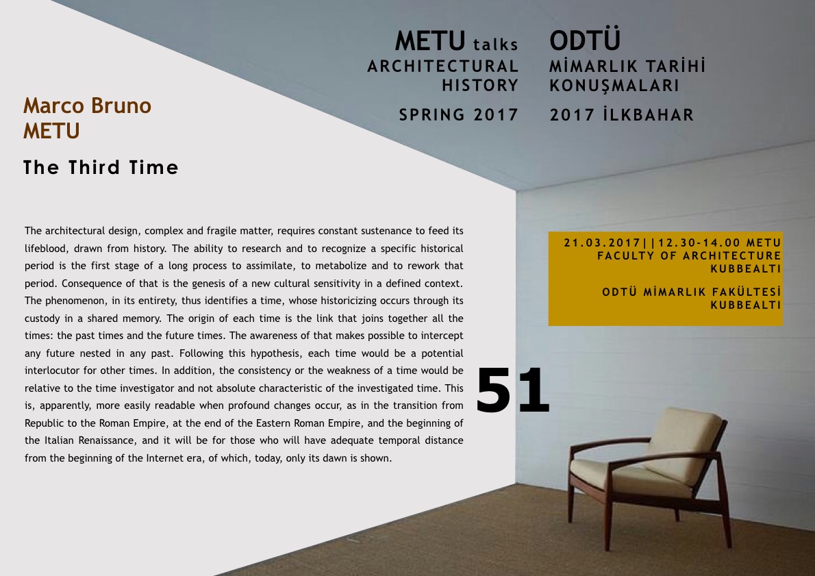 51. Marco Bruno from Middle East Technical University lectured on “The Third Time” on 21 March 2017 Tuesday in Kubbealtı (DOME).