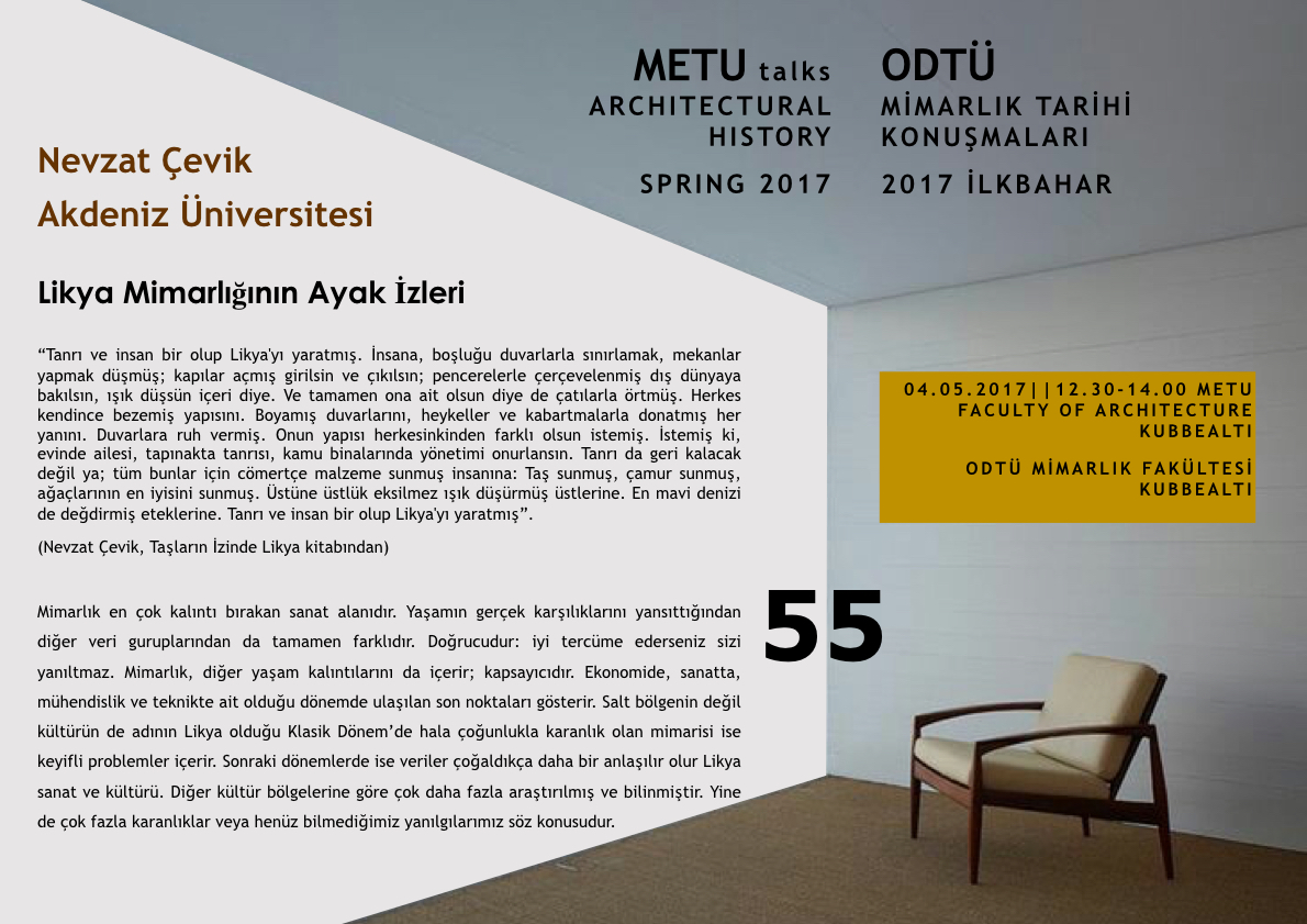 55. Nevzat Çevik from Akdeniz University lectured on “Likya Mimarlığının Ayak İzleri” on 4 May 2017 Thursday in Kubbealtı (DOME).