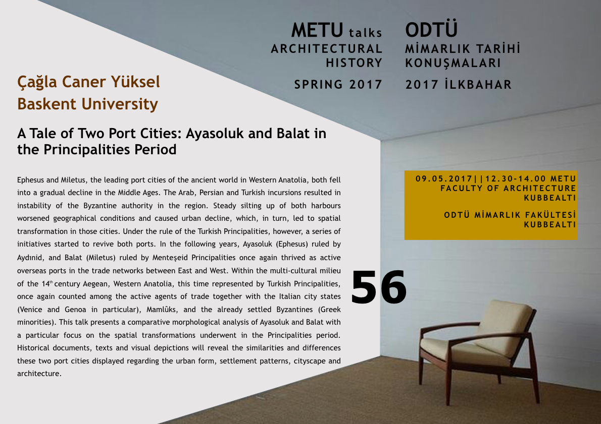 56. Çağla Caner Yüksel from Başkent University lectured on “A Tale of Two Port Cities: Ayasoluk and Balat in the Principalities Period” on 9 May 2017 Tuesday in Kubbealtı (DOME).