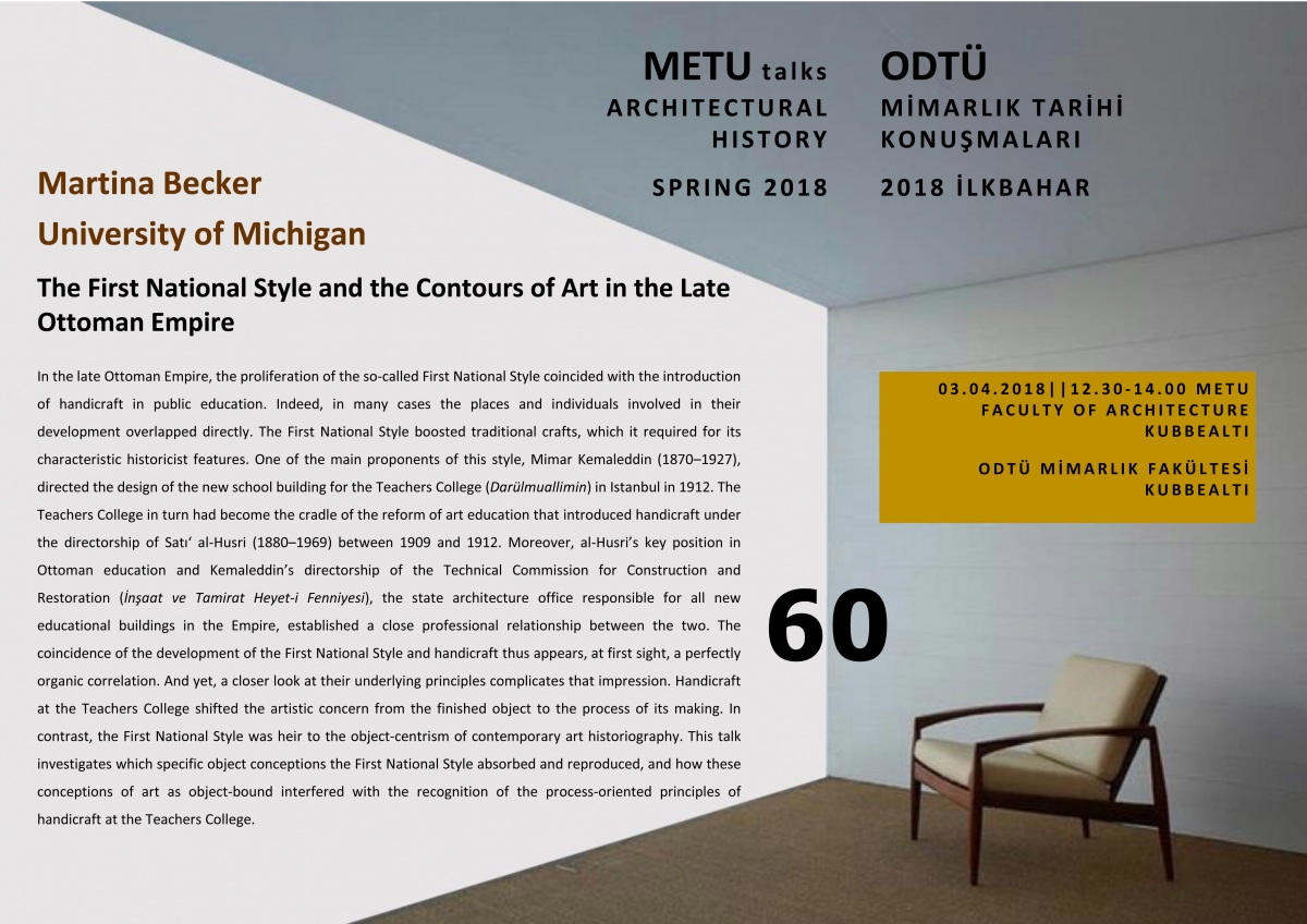 60. Martina Becker from University of Michigan lectured on “The First National Style and the Contours of Art in the Late Ottoman Empire” on 3 April 2018 Tuesday in Kubbealtı (DOME).
