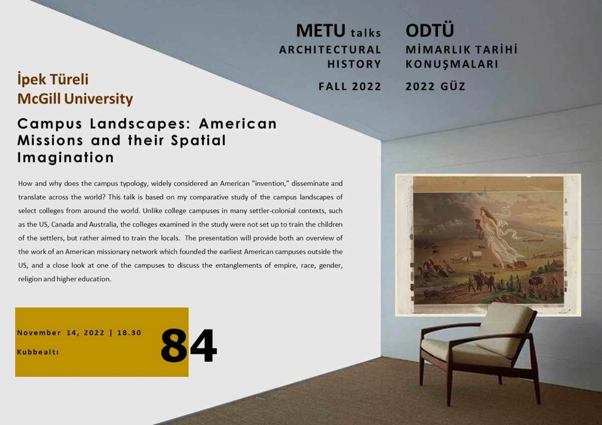 84. İpek Türeli "Campus Landscapes: American Missions and their Spatial Imagination" on November 14, 2022 in Kubbealtı (DOME).