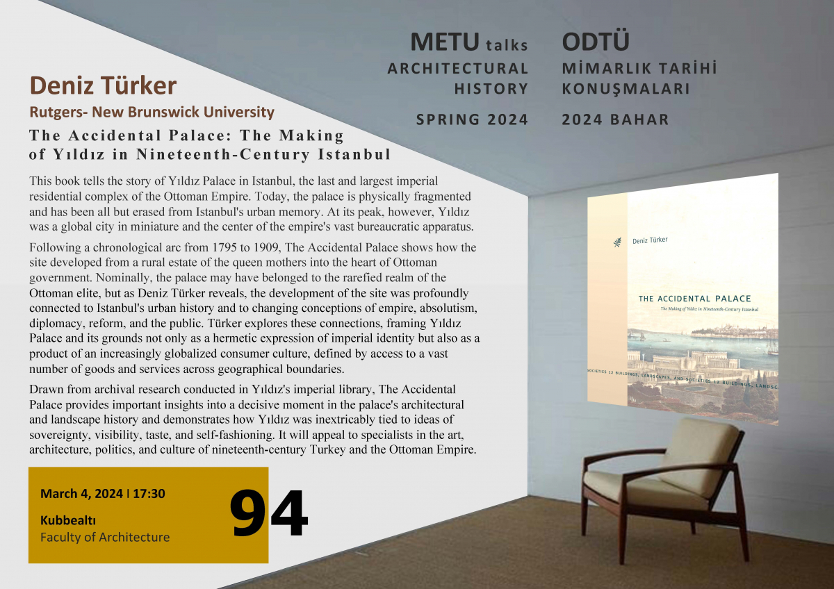 94. Deniz Türker "The Accidental Palace: The Making of Yıldız in Nineteenth-Century Istanbul" on March 4, 2024 in Kubbealtı (DOME).