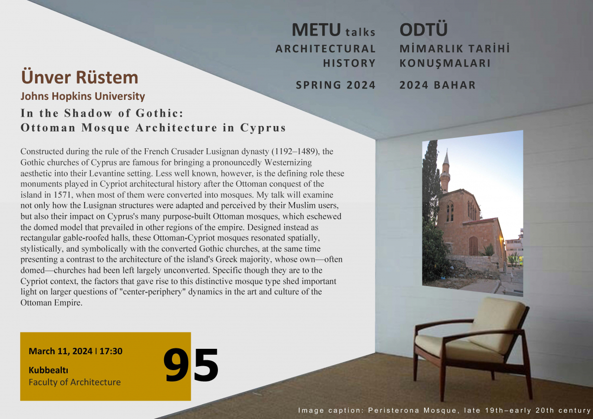 95. Ünver Rüstem "In the Shadow of Gothic: Ottoman Mosque Architecture in Cyprus" on March 11, 2024 in Kubbealtı (DOME).