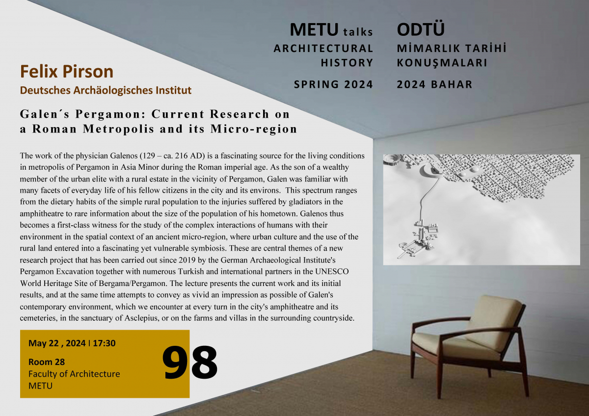 98. Felix Pirson "Galen's Pergamon: Current Research on a Roman Metropolis and its Micro-region" on May 22, 2024 in Room 28.