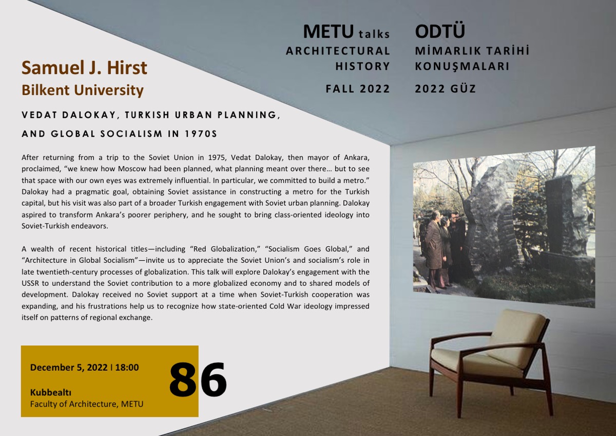 86. Samuel J. Hirst "Vedat Dalokay, Turkish Urban Planning, and Global Socialism in 1970s" on December 5, 2022 in Kubbealtı (DOME).